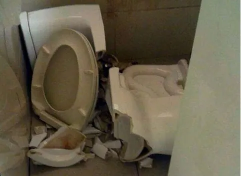 Bệnh nhân cho biết khi đi vệ sinh đã ngồi xổm trên bồn cầu. Do bệnh nhân 95 kg nên bồn cầu không chịu nổi lực nặng và bể đôi. Theo phản xạ, bệnh nhân chúi về trước và phần mông nằm trên bồn cầu bị bể. Do vậy, vết nứt của bồn cầu đã cắt đứt trọn phần mông.