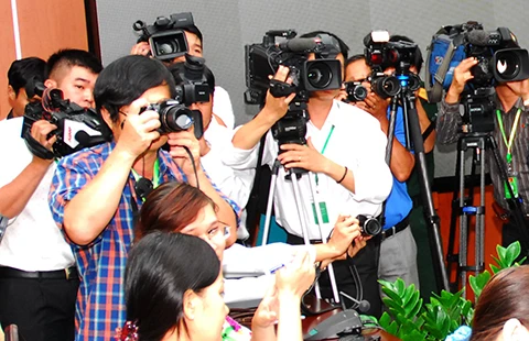 Các nhà báo đang tác ngiệp thời sự tại một cuộc họp báo ở TP.HCM. Ảnh: HTD