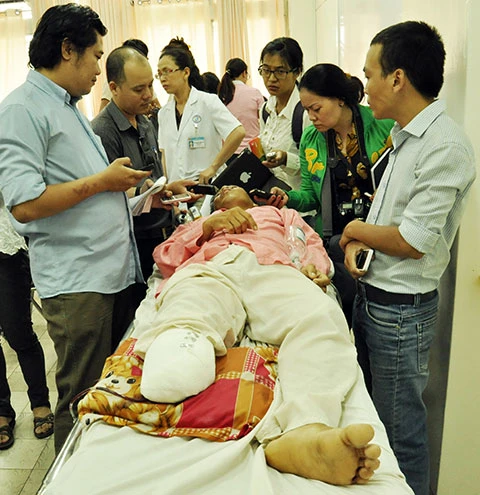 BS Lê Văn Tuấn, Trưởng khoa Chấn thương Chỉnh hình BV Chợ Rẫy, cho biết bệnh nhân Nam được BV An Giang chuyển lên BV Chợ Rẫy vào chiều 26-10 trong tình trạng tỉnh, tiếp xúc tốt. Bệnh nhân bị cắt cụt 1/3 cẳng chân phải, chỗ mỏm cụt còn hở da nhưng vết thương khô. Bệnh nhân được chụp X-quang phổi và siêu âm ngực để theo dõi nhưng chưa thấy bất thường. Do sáng 27-10 bệnh nhân tiếp tục than đau ngực, khó thở và đau bụng nên BV tiếp tục làm các chẩn đoán hình ảnh để theo dõi. “Nếu bệnh nhân ổn định thì 1-2 tháng tới các bác sĩ sẽ khâu mỏm cụt. Phần cụt có thể được lắp chân giả để đi lại” - BS Tuấn nói.