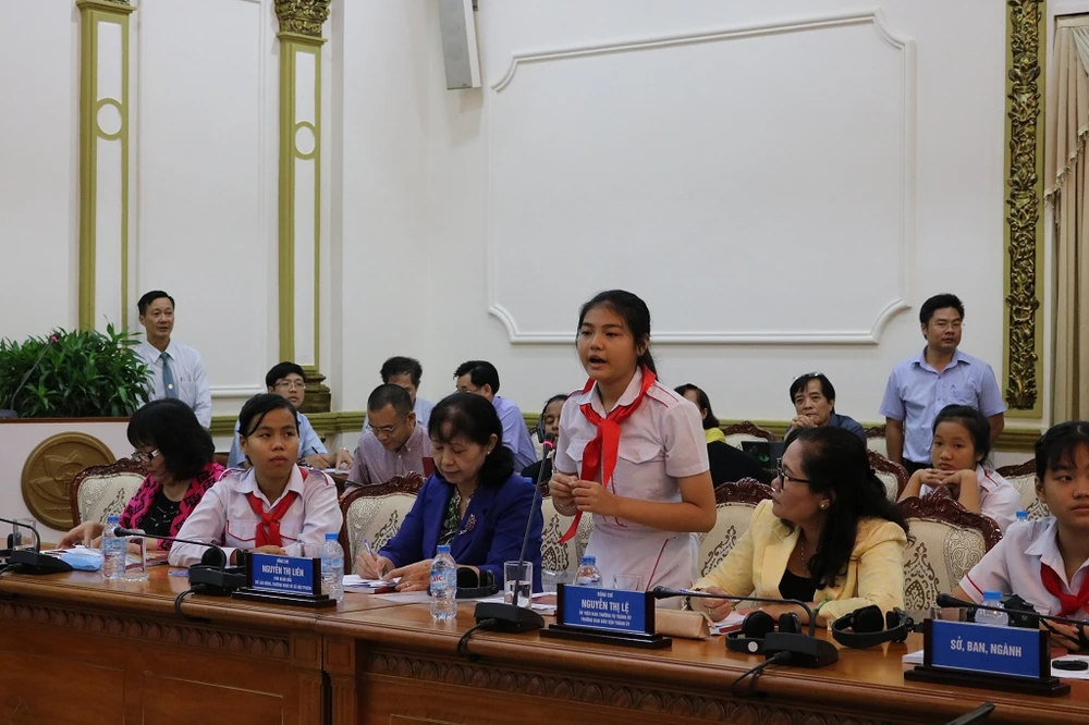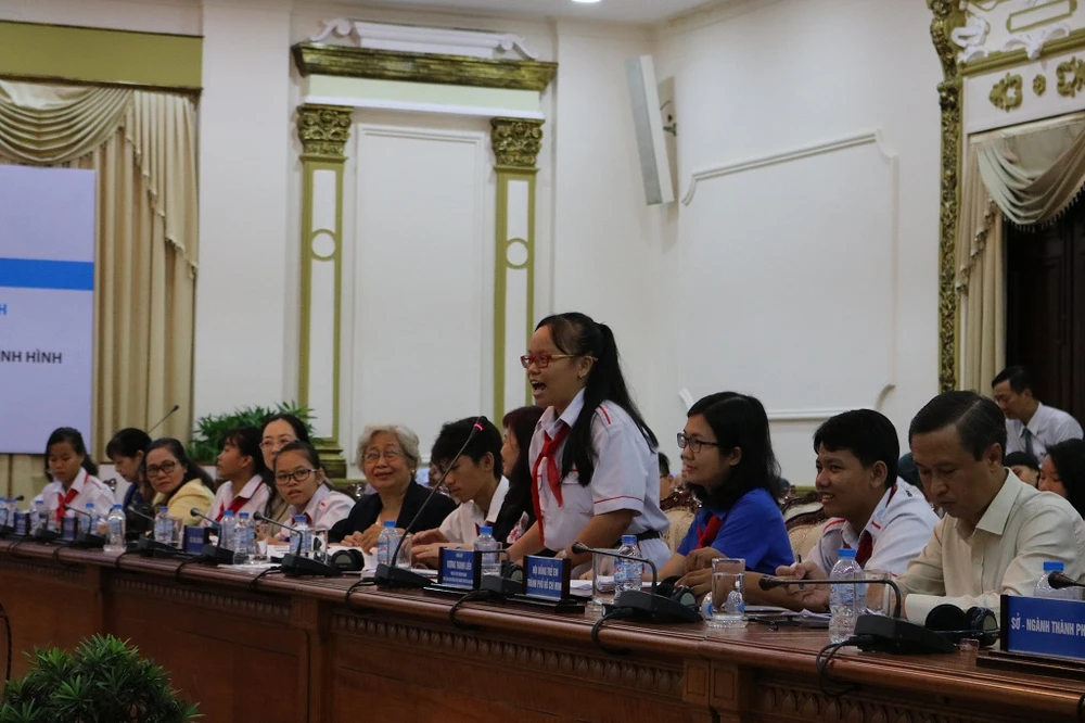 Trao đổi tại buổi gặp gỡ, bà Nguyễn Thị Thu, Phó Chủ tịch UBND TP.HCM, nêu quan điểm, những ý kiến của các em học sinh một lần nữa minh chứng rằng các em chính là tác nhân thúc cuộc sống trở nên tích cực hơn. Bà nói rằng bất kỳ đứa trẻ nào cũng cần có cơ hội ngang nhau trong việc tiếp cận cơ hội học tập, vui chơi và giải trí nên cũng hy vọng rằng các cấp quận, huyện có thể lắng nghe và lưu tâm hơn đến các đề xuất mà các em đưa ra. “Từ những đóng góp đó tôi cũng hy vọng chúng ta sẽ có những chính sách phù hợp nhất, góp phần chăm lo, thực hiện tốt hơn các vấn đề liên quan để thúc đẩy sự phát triển của trẻ em - những mầm non tương lai của TP”, bà nói.