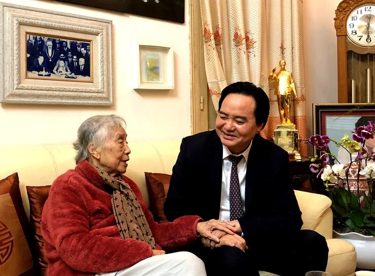 Bộ trưởng Bộ GD&ĐT Phùng Xuân Nhạ chúc tết nguyên Phó Chủ tịch nước Nguyễn Thị Bình