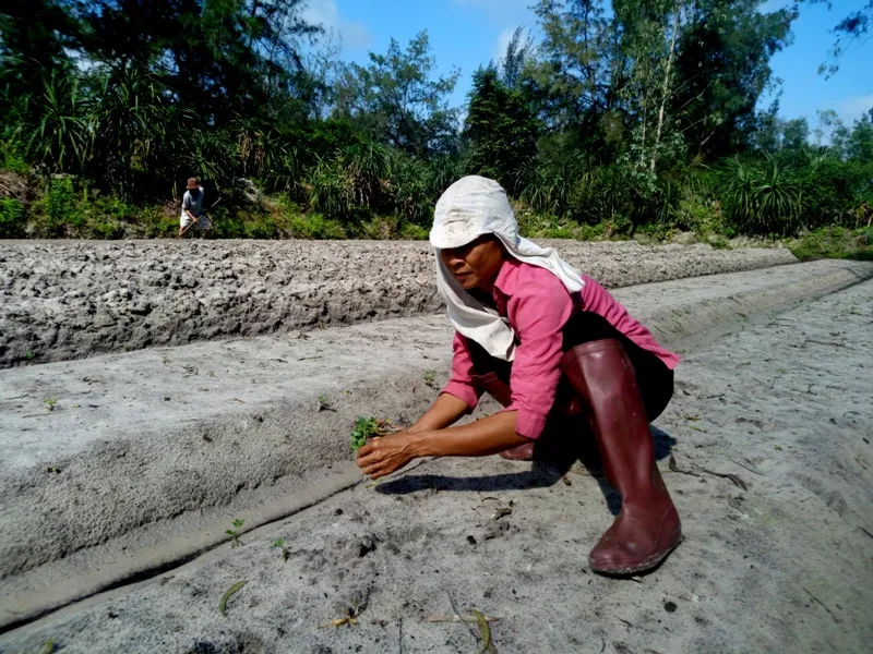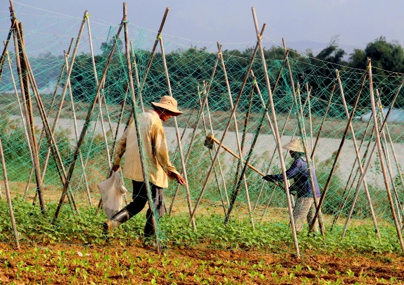 Người nông dân ở xã Duy Vinh, huyện Duy Xuyên đang khôi phục lại những đám hoa màu sau lũ để kịp có rau bán tết.