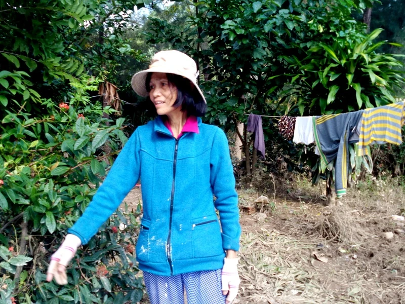 Bà Hiệu đang xới lại đất để trồng lại rau màu ngắn vụ hy vọng thu kịp mùa tết để bán kiếm tiền.