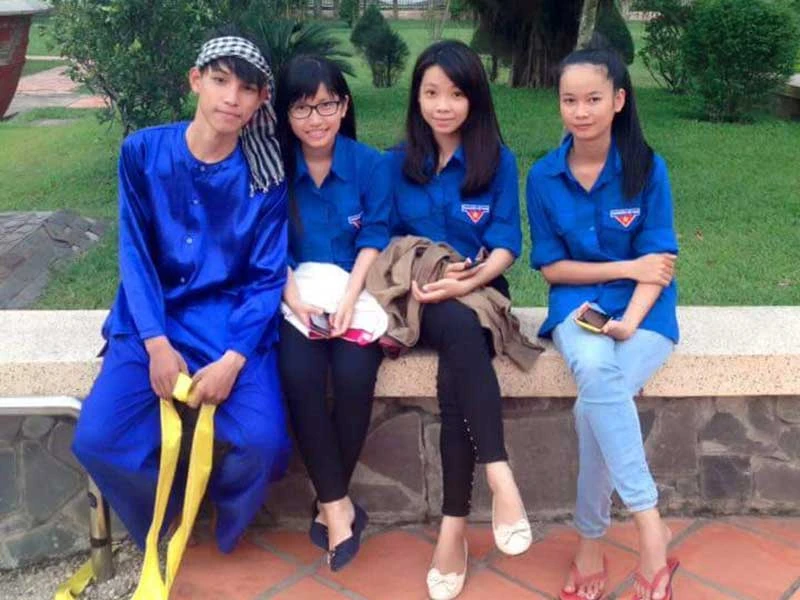 Đỗ Huỳnh Gia Linh (thứ hai từ phải qua) cùng bạn tham gia Mùa hè xanh lúc còn học lớp 12. Ảnh: TT
