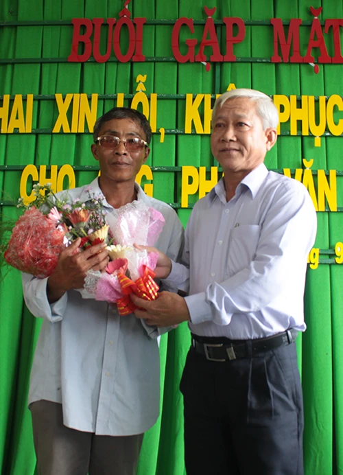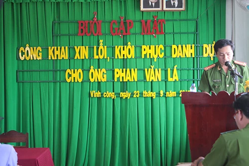 Lúc 13 giờ 30 ngày 23-9, tại hội trường trụ sở UBND xã Vĩnh Công (huyện Châu Thành, Long An), với sự tham dự của các cơ quan tố tụng huyện Châu Thành và đại diện UBND huyện, xã, công an huyện Châu Thành đã tổ chức xin lỗi và trao tiền bồi thường cho ông Phan Văn Lá, bị can bị bỏ quên 21 năm. Nhiều người thân của ông Lá cũng đến dự buổi xin lỗi công khai này.