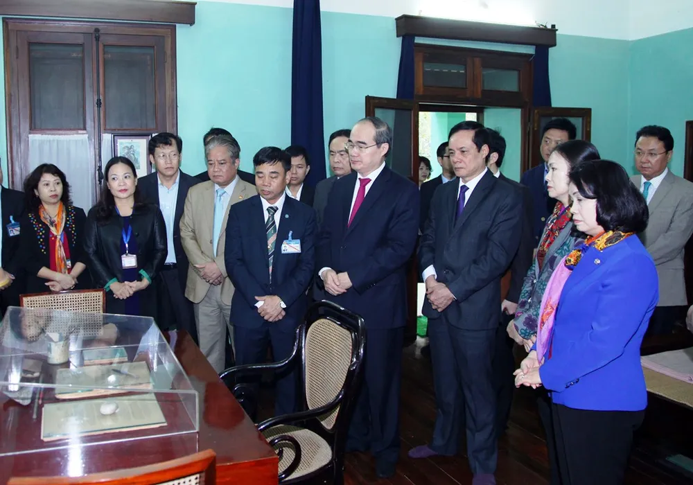 Ông Nguyễn Thiện Nhân và đoàn đại biểu MTTQ Việt Nam thăm những kỷ vật của Hồ Chủ tịch tại Nhà 67