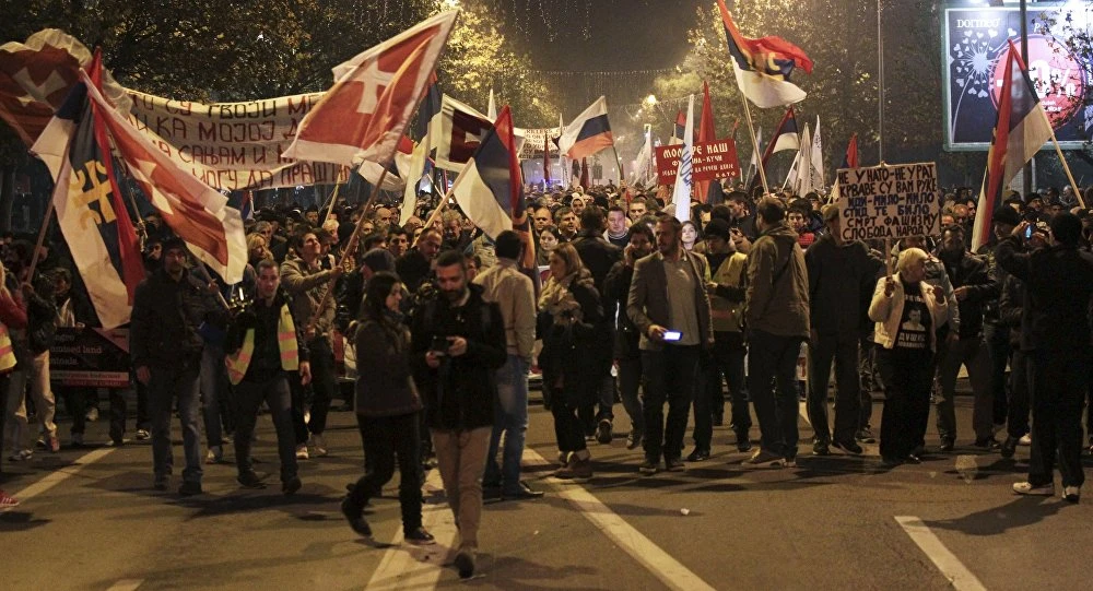 Truyền thông địa phương cho biết có gần 5.000 người tham gia các cuộc biểu tình tại thủ đô đất nước vùng Balkan. Còn theo Fox News (Mỹ), nhiều nhóm biểu tình còn hô vang khẩu hiệu "Nước Nga! Nước Nga!". Những người biểu tình giơ cao các biểu ngữ như "NATO - Những kẻ sát nhân" hay "Các người không được chào đón tại đây". Cựu Tổng thống Montenegro - ông Momir Bulatovic cáo buộc: "NATO mời đất nước chúng ta gia nhập để có thêm quân chống lại nước Nga". Theo Fox News, những cuộc biểu tình này được phát động bởi các nhóm chính trị ủng hộ Nga, đòi chính phủ và Quốc hội nước này phải tổ chức trưng cầu dân ý toàn quốc về quyết định gia nhập NATO.