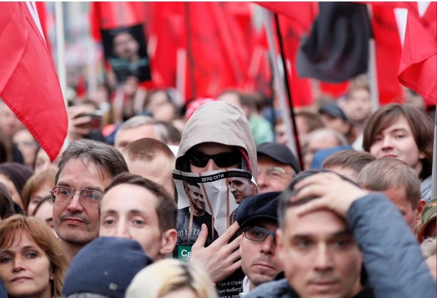 Hơn 25.000 người xuống đường biểu tình ở Moscow ngày 29-0, yêu cầu chính phủ Nga thả những người biểu tình trong các cuộc biểu tình hồi tháng 7. Ảnh: REUTERS
