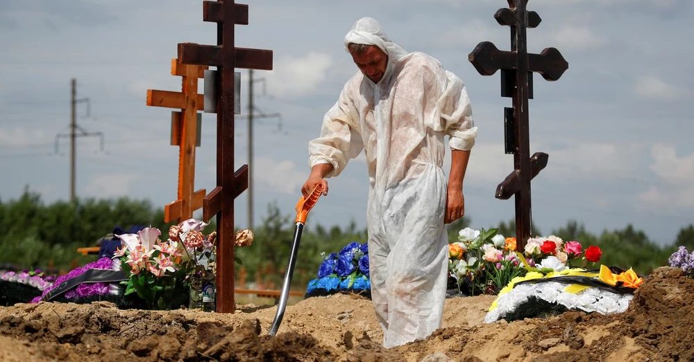 Một người chôn cất người chết vì COVID-19 tại một nghĩa trang ở TP Saint Petersburg (Nga) hôm 25-6. Ảnh: REUTERS