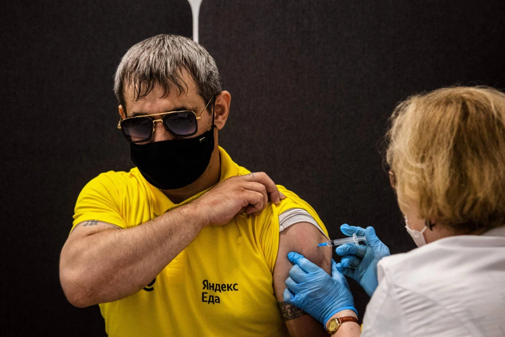 Một người đi tiêm vaccine Sputnik V ngừa COVID-19 tại thủ đô Moscow. Ảnh: AFP