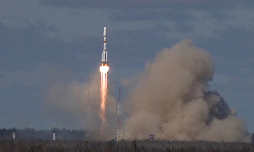 Tên lửa Soyuz-2 1b của Nga mang theo vệ tinh quân sự phóng vào vũ trụ tháng 5-2020 . Ảnh: TASS