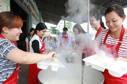 Bà Phạm Thị Loan, Chủ tịch Hội Chữ thập đỏ phường Bình Hưng Hoà, quận Bình Tân cho biết: “Trước đây trên địa bàn phường, hộ nghèo còn rất nhiều, hơn nữa còn có cả người khuyết tật, người nhiễm chất độc da cam, người mù… Vì thế xuất phát từ tình thương, từ mong muốn giúp phường nhà thoát nghèo, hội chữ thập đỏ phường đã vận động nhiều mạnh thường quân đóng góp những bữa cơm cho người nghèo”.