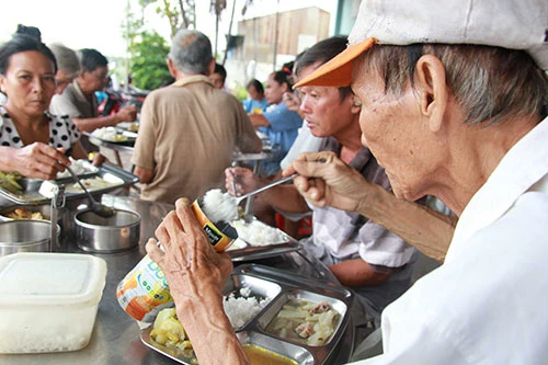 Bà Lê Thị Dậy (81 tuổi, quê Bình Định) là một trong những người được nhận bữa cơm tình thương ở nhà ăn này ngay từ khi nhà ăn mới thành lập. Bà kể, ở quê không kiếm nổi miếng ăn nên theo con vào Sài Gòn đi làm thuê. “Mỗi ngày, bà lượm ve chai để kiếm sống, nhưng nay tuổi già, đau nhức thường xuyên nên không còn lượm ve chai được nữa, thật may khi vẫn có cơm để ăn thế này thiệt mừng quá” – bà xúc động.