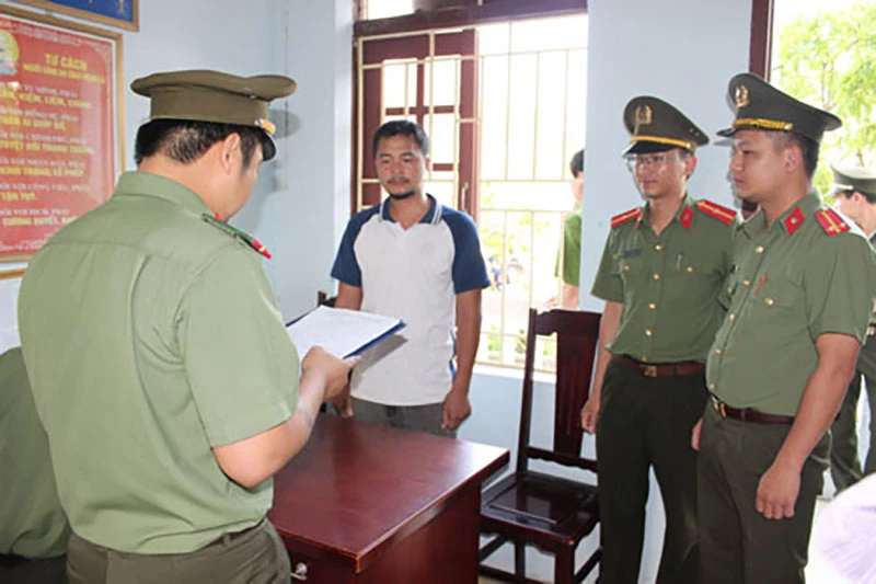 Cơ quan An ninh điều tra, Công an tỉnh Thanh Hóa đọc lệnh bắt giam Nguyễn Duy Sơn về tội lợi dụng các quyền tự do dân chủ xâm phạm lợi ích của Nhà nước, quyền, lợi ích hợp pháp của tổ chức, công dân. Ảnh: M.HÀ