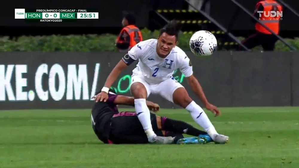 Đó là trận đấu trong trận chung kết vòng loại Olympic Tokyo khu vực CONCACAF, tiền vệ Denil Maldonado của đội U-23 Honduras trong trận gặp U-23 Mexico trên sân Estadio Akron.
