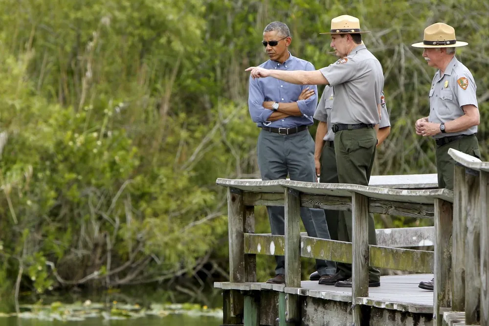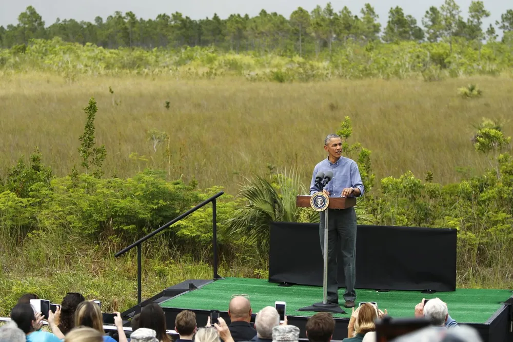 Trong bốn tiếng rưỡi công du tại Florida, ông Obama đã đến thăm công viên quốc gia Everglades, thực hiện một bài phát biểu về hiện tượng nóng lên toàn cầu, và quay trở về Nhà Trắng khoảng 8 giờ tối cùng ngày.