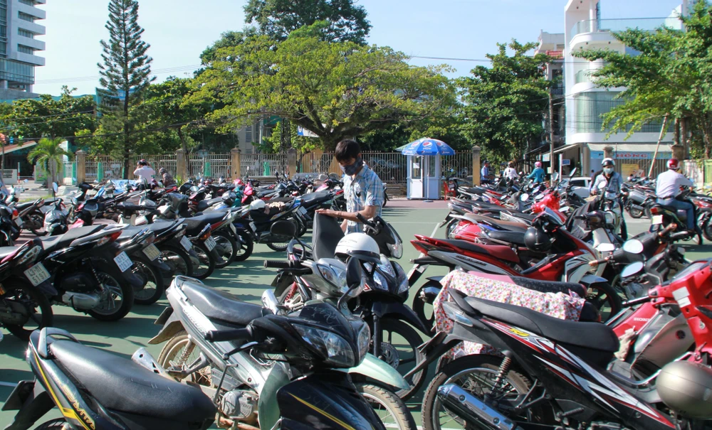 Xe người dân phơi nắng khi đến giải quyết thủ tục hành chính tại tòa nhà Trung tâm hành chính TP.LÊ PHI