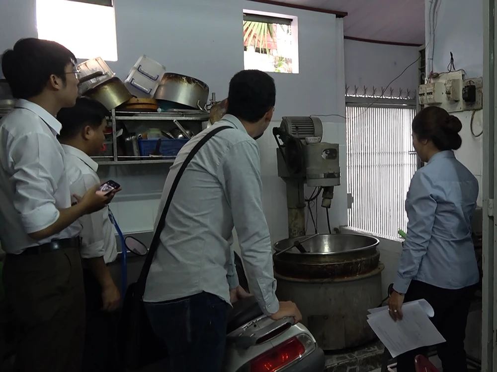 Trước đó ngày 28-8 đoàn kiểm tra UBND quận Bình Thạnh cũng lập biên bản cở sở này về lỗi không có kệ pallet trong sản xuất chế biến bánh trung thu.