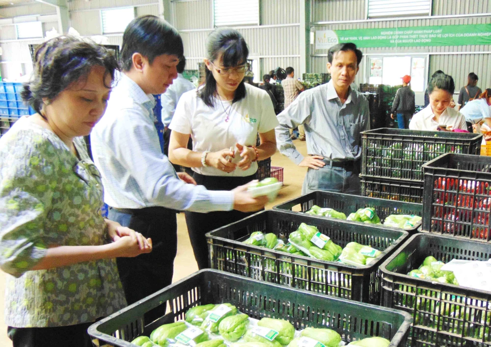 Ban Quản lý ATTP TP.HCM thị sát một cơ sở chế biến rau ở tỉnh Lâm Đồng. Ảnh: TRẦN NGỌC