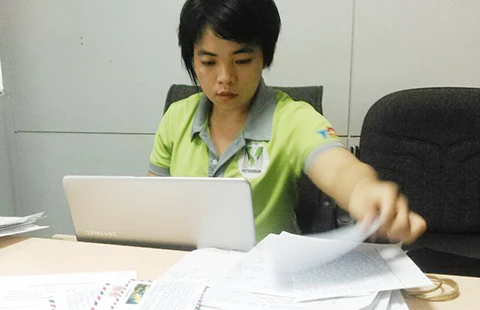 Ban thư ký nhập liệu để chấm thi. Ảnh: H.VI