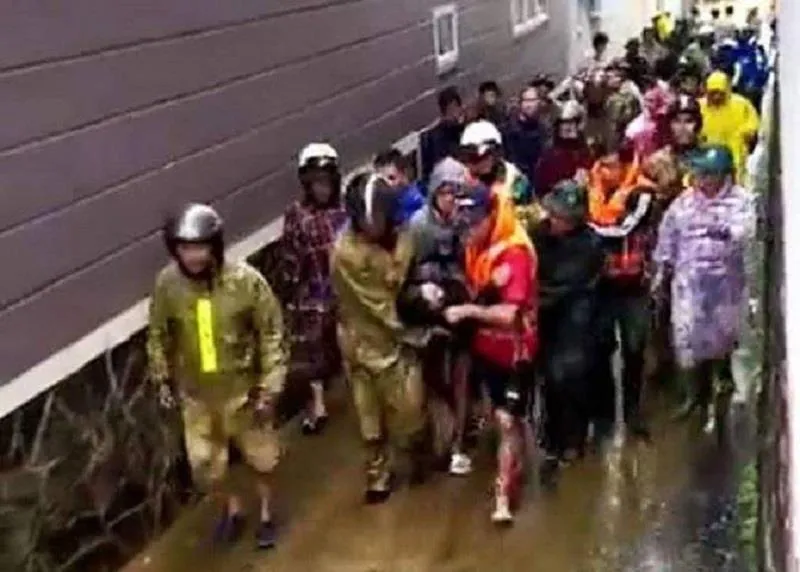 Sáng 8-8, nhiều địa điểm tại Lâm Đồng chìm trong biển nước, trong đó có xã Lộc Châu. Thời điểm nước dâng cao, ông Hoàng Minh Tú (50 tuổi, Công an thôn Tân Thịnh) cùng người dân ra thông ống cống để thoát nước.