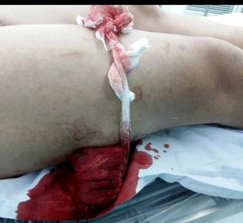 Anh Phương bị kẻ lạ đâm xuyên đùi khi đang trên đường đi làm. Ảnh: TIẾN DŨNG