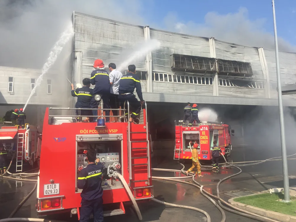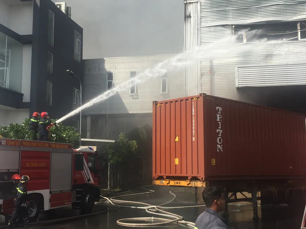 Đến khoảng 13 giờ 30 ngày 24-11, gần 20 chiếc xe chữa cháy cùng lực lượng chữa cháy gồm hàng trăm người đang tích cực khống chế đám cháy lớn xảy ra tại Công ty Master Sofa (xã Vĩnh Tân, thị xã Tân Uyên, Bình Dương).