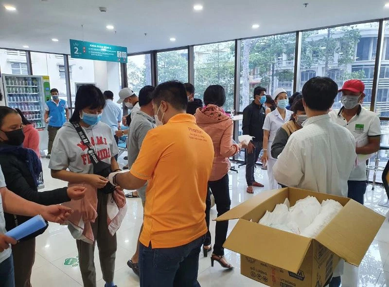 Khẩu trang được nhân viên công ty phát miễn phí tại một bệnh viện ở TP.HCM. Ảnh: SƠN NGỌC