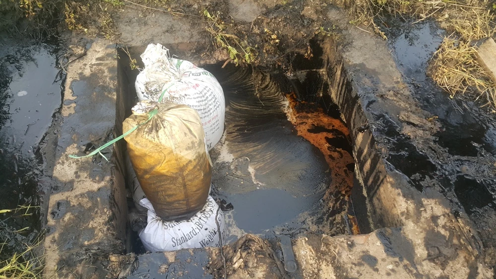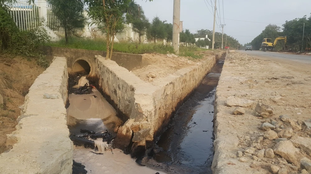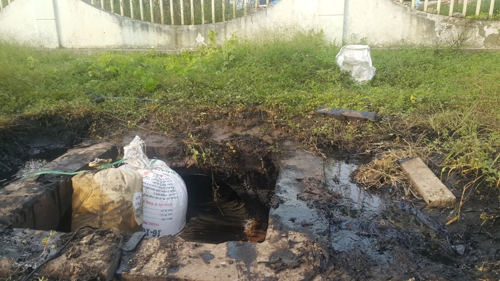 Ghi nhận của PV tại hiện trường cho thấy nắp hố ga nằm ngay phía trước, cạnh hàng rào của Công ty TNHH MTV Pak Việt Nam bị bể, nước thải có màu đen kịt như hắc ín, mùi hắc rất khó chịu. Lượng nước màu đen này theo một đường mương chảy ra môi trường.