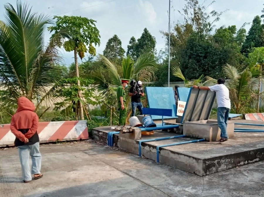 Lực lượng chức năng tỉnh An Giang kiểm tra bồn chứa xăng. ẢNH: N.HỒ