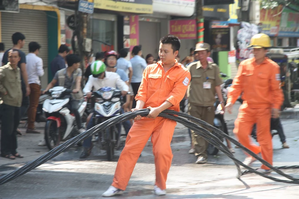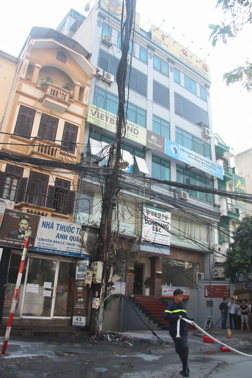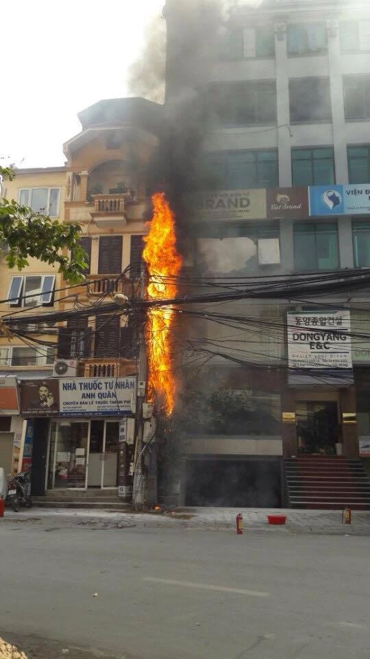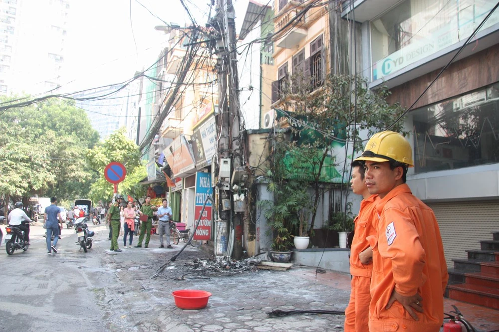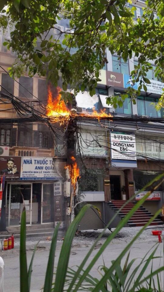 Vào thời điểm trên, người dân tại ngõ 43 Trung Kính, Hà Nội bất ngờ nghe thấy tiếng nổ lẹt đẹt kèm theo đó là khói và lửa bốc lên dữ dội từ một cột điện gần cửa hàng thuốc.