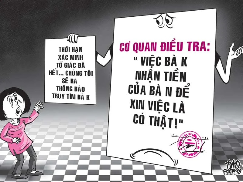 Từ đó cơ quan điều tra xác định việc bà Kiều nhận 50 triệu đồng của bà Nhung để làm chi phí xin việc làm cho bà Nhung là có thật. Tuy nhiên, theo như bà Kiều khai thì đã đưa tiền và hồ sơ của bà Nhung cho T. để xin việc nhưng hiện nay T. đã chết, không thể làm rõ nội dung tố giác của bà Nhung để chứng minh hành vi của bà Kiều có gian dối hay không.