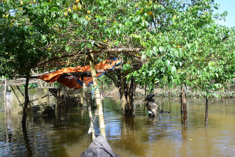Đến khoảng 23 giờ cùng ngày, anh Được lội nước về nhà. Tới cây khế gần nhà thì anh bị cóng và gục xuống. Đến 8 giờ sáng hôm sau (11-12) người dân mới phát hiện được.