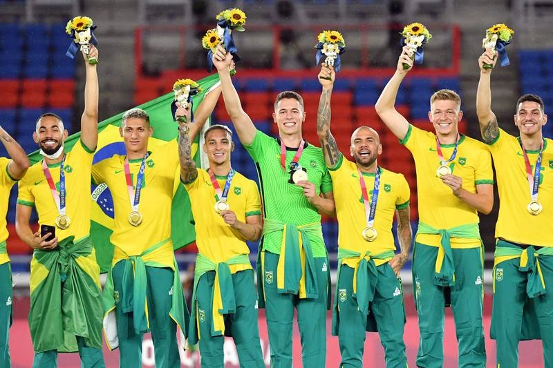 Olympic Brazil đánh bại Olympic Tây Ban Nha 2-1 qua 120 phút, bảo vệ thành công ngôi vô địch bóng đá nam Olympic Tokyo. Ảnh: Getty