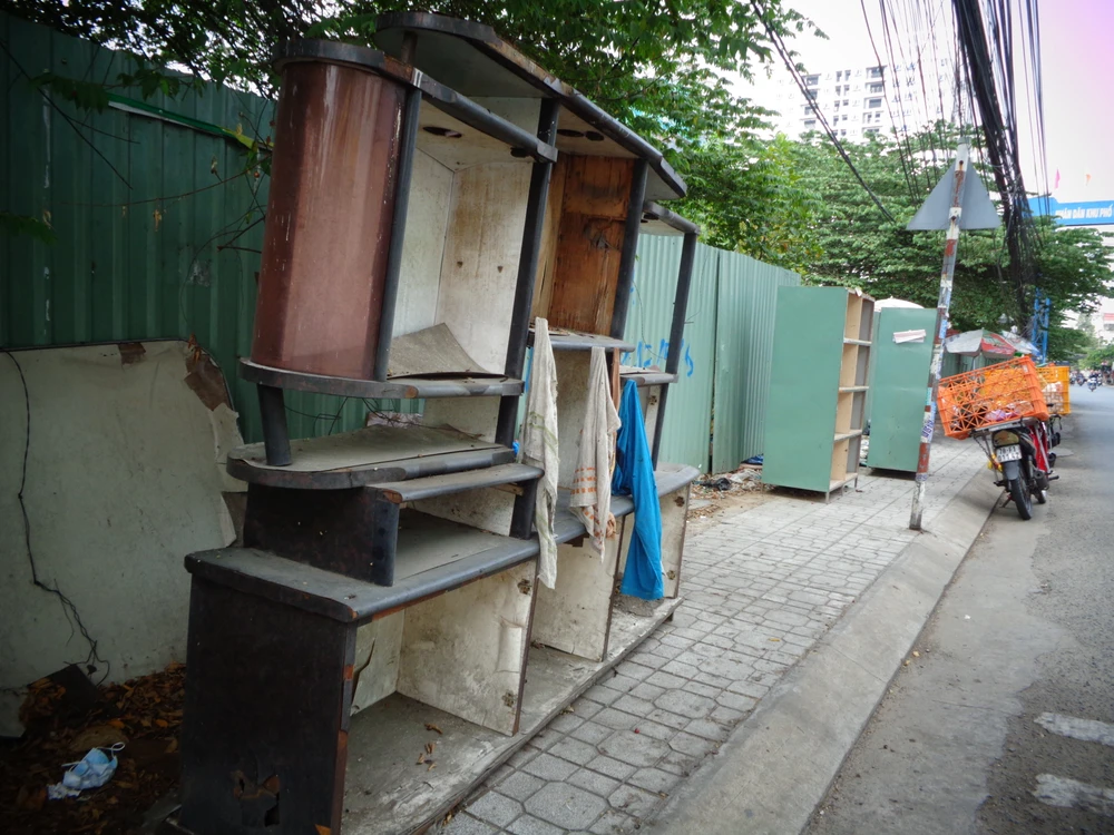 Các loại tủ dùng trong sinh hoạt như thế này được xem là chất thải rắn cồng cồng kềnh, phải có quy trình thu gom, xử lý riêng. Người muốn vứt bỏ loại rác này phải liên hệ với đơn vị dịch vụ thu gom rác để thỏa thuận mức phí cần trả, không thể tiện tay đem vứt ngoài đường như thế này.