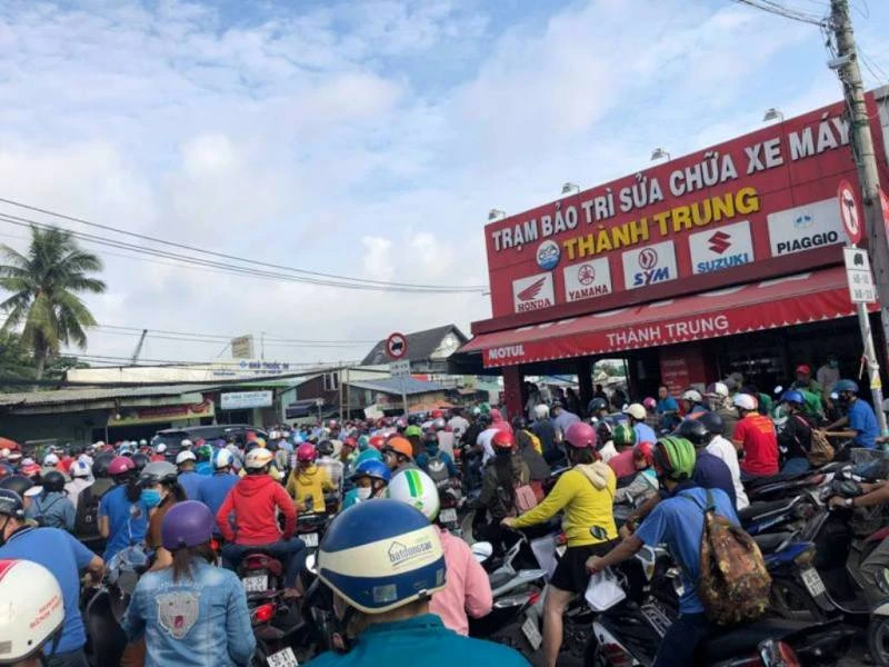 Khu vực xây dựng cầu Tăng Long thường xuyên bị kẹt xe. Ảnh: ĐÀO TRANG