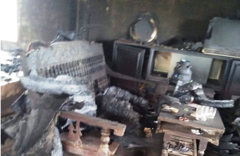 Căn nhà của vợ chồng ông Quế bị phóng hỏa đốt cháy hết đồ dùng.