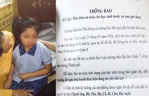 Ngay sau sự việc xảy ra, nhà trường nơi có em học sinh bị người lạ chở đi đã có thông báo đến toàn thể học sinh, phụ huynh về việc đưa đón con em đến trường. “Tuyệt đối không cho trẻ đeo nữ trang có giá trị đi học” - trường thông báo.