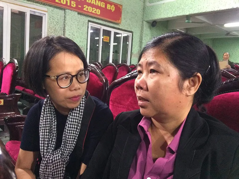 Ngồi lặng lẽ ở hàng ghế giữa hội trường, bà Phan Thị Xuyến (62 tuổi), ngụ xã Văn Hải, Kim Sơn, Ninh Bình nắm chặt hai bàn tay để kìm nén xúc động.