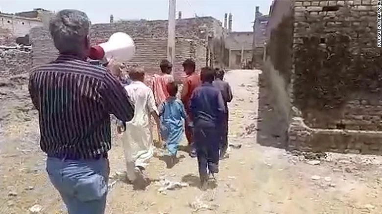 Liaquat Mirani, một nhà hoạt động địa phương sử dụng loa để kêu gọi dân làng ở Allah Dino Seelro tránh tiêm thuốc để ngăn ngừa sự lây lan của HIV. Ảnh: CNN