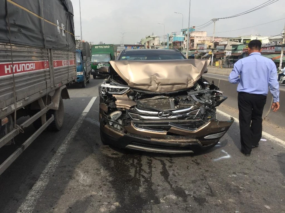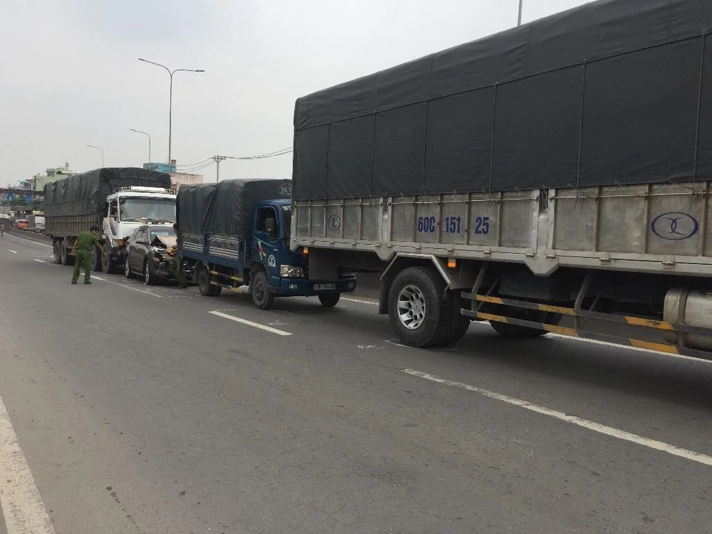 Theo đó, xe tải 60C-151.25 chạy trên quốc lộ 1 theo hướng từ ngã tư Bà Điểm về cầu vượt Bình Phước, khi lên tới dốc cầu vượt An Sương thuộc địa bàn phường Tân Thới Nhất (quận 12) thì tài xế cho xe di chuyển chậm vì phía trước bị ùn tắc. Lúc này xe tải nhẹ 51D-064.08 và ô tô bảy chỗ 51F-330.50 cũng dừng chờ.