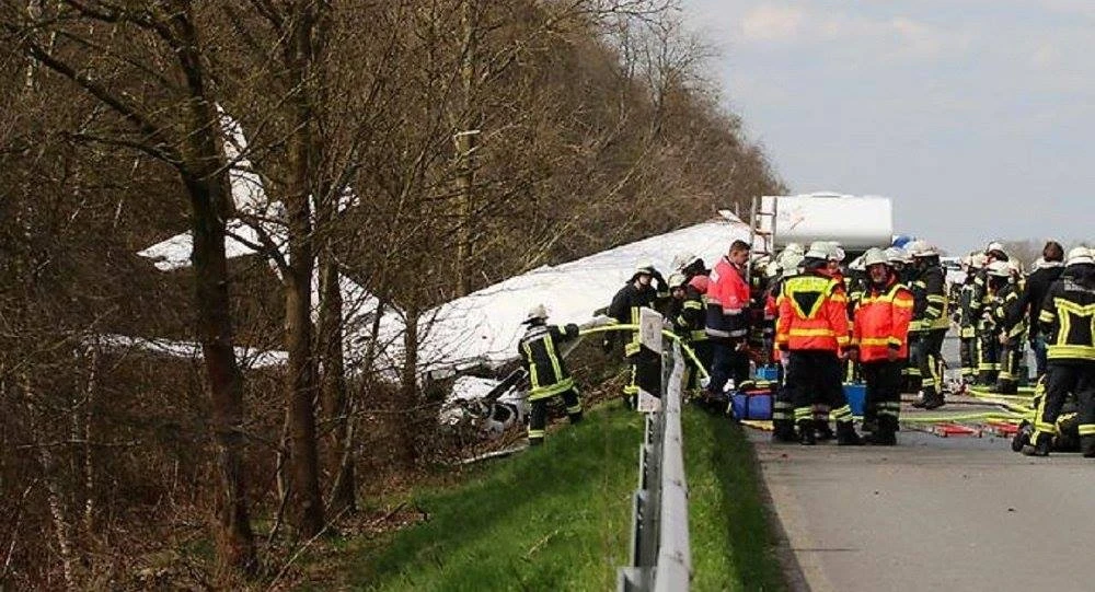 Một máy bay dân sự rơi trên đường cao tốc ở Đức (Ảnh: Sputnik News)