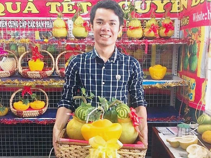 Những người bán hoa lan, trái cây tạo hình như bưởi hồ lô Tài Lộc, dưa vàng vuông, hình thỏi vàng… vẫn hút khách hốt bạc dịp Tết này.