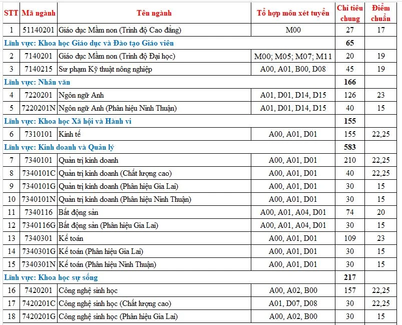 Điểm chuẩn từng ngành như sau:
