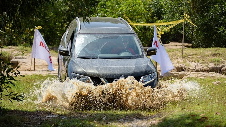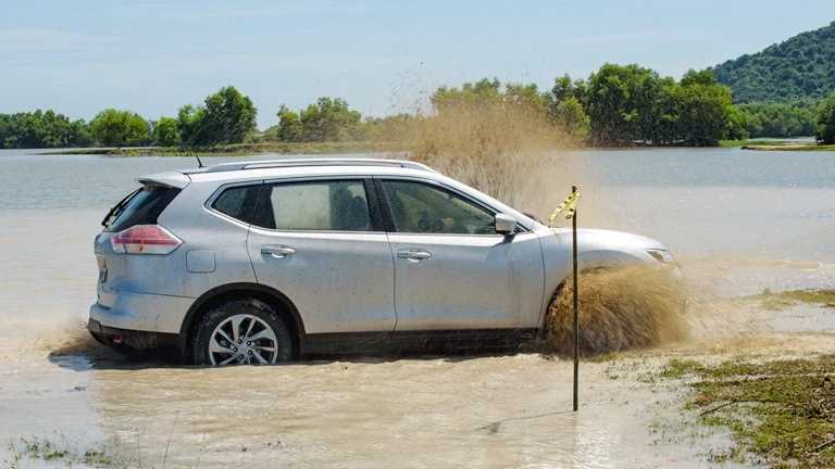 Chiếc X-Trail 2 cầu mạnh mẽ vượt qua vùng nước sình lầy