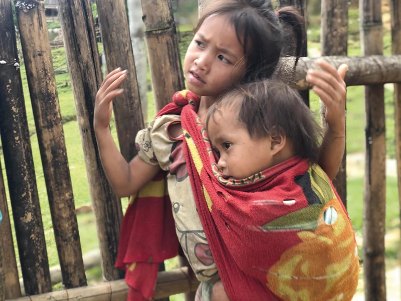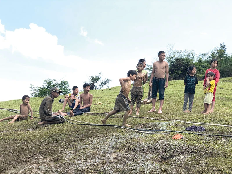 Rảo một vòng quanh bản, tôi đếm đâu được 35 nóc nhà. Phía đỉnh đồi, nhóm trẻ dùng vòi dẫn nước làm ướt mềm thảm cỏ để chơi trò máng trượt. Cả nhóm thả mông trên thảm cỏ và đất mềm rồi trượt vun vút xuống phía chân đồi. Hóa ra lũ trẻ mỗi miền đều có trò chơi riêng độc đáo của mình. Mà lũ trẻ vùng cao này thì khá bạo gan với những trò chơi cảm giác mạnh thú vị đến vậy.
