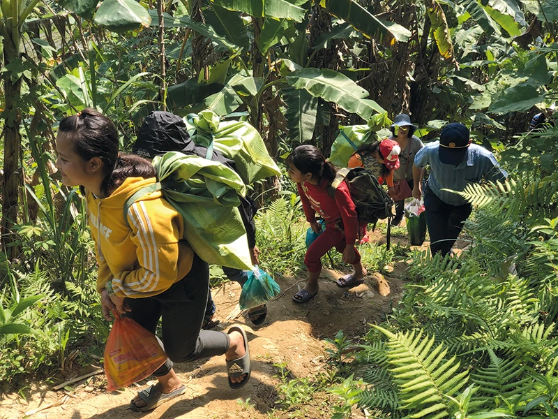Người dân vùng Tắk Pổ dưới xuôi lên bản.