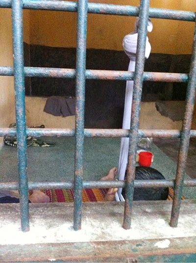 Nghi can chết trong nhà tạm giữ trong tư thế ngồi bằng sợi dây gắn ở cửa sổ. (Ảnh do người nhà nạn nhân cung cấp)