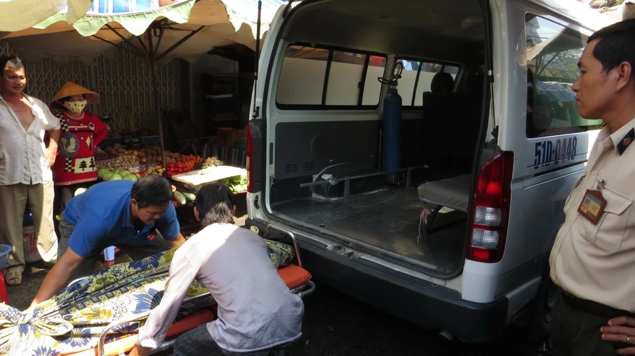 Vào thời điểm trên, một người buôn bán trong chợ đi vào nhà vệ sinh thì phát hiện nạn nhân nằm sõng xoài dưới nền nhà nên hô hoán báo cho bảo vệ chợ và công an đến hiện trường.