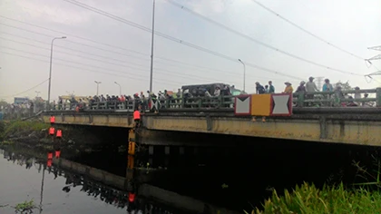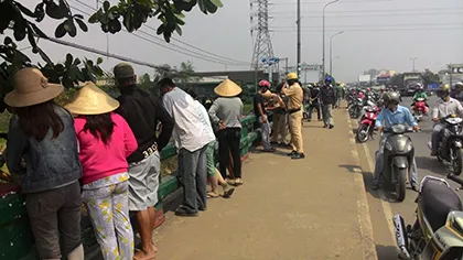 Rất đông người dân hiếu kỳ đến tìm hiểu sự việc. và xem lực lượng chức năng lặn tìm thi thể nạn nhân.